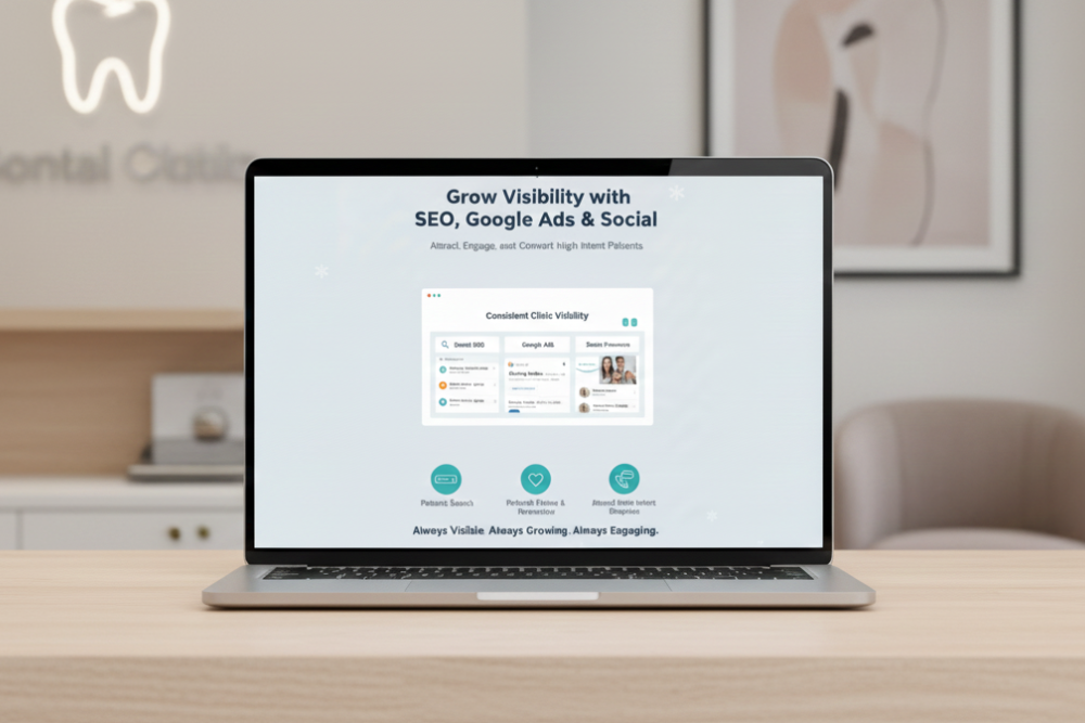 We keep your clinic consistently visible where patients search and decide. With dental SEO and high-performing Google Ads, we help you attract high-intent enquiries for the right services. We also manage your social presence so patients find, follow, and remember your clinic over time.